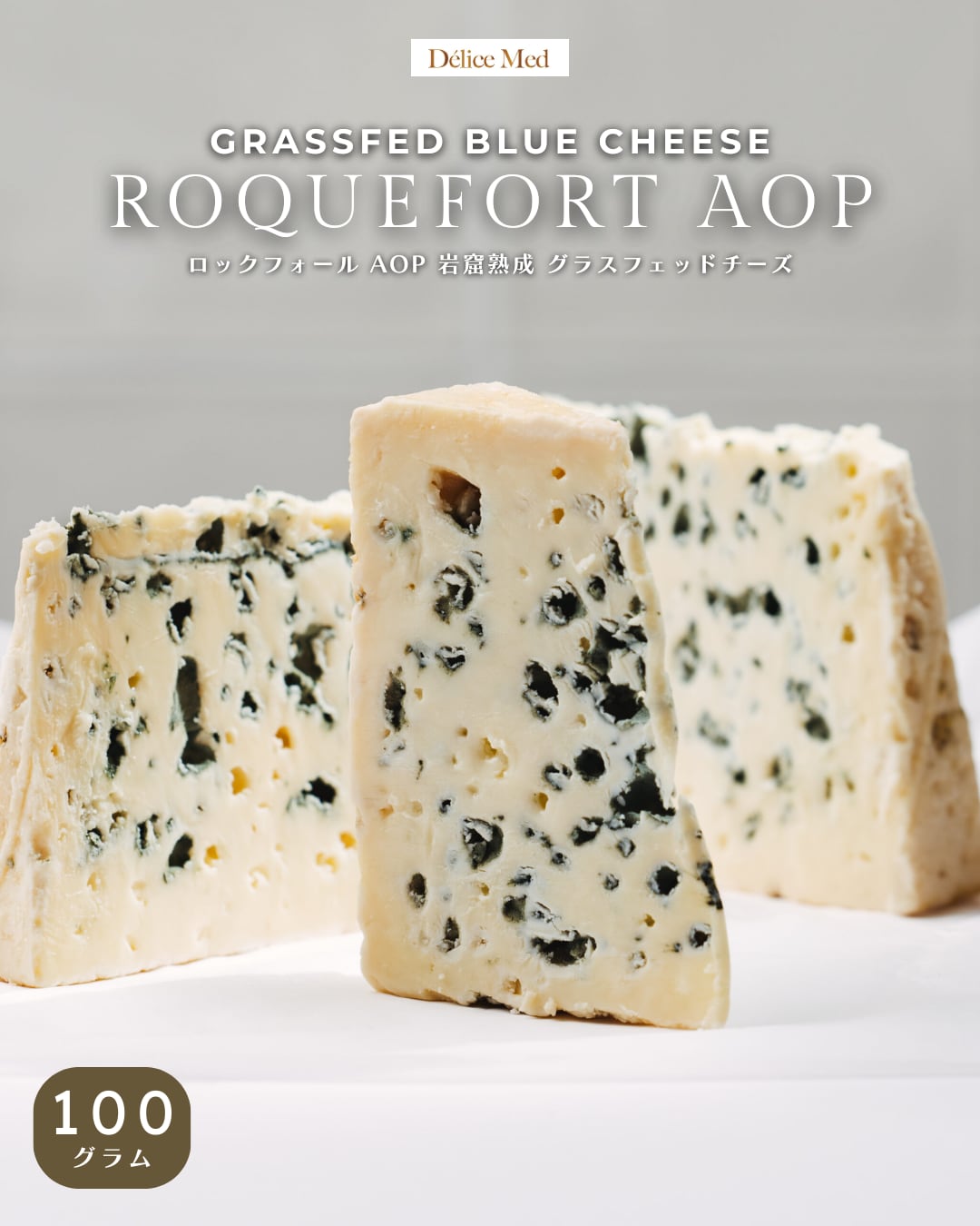 フランス産 ロックフォール AOP 100g 羊乳ブルーチーズ まろやかなコクと余韻|パンやワインに合う ギフトにも Roquefort【DELICEMED】