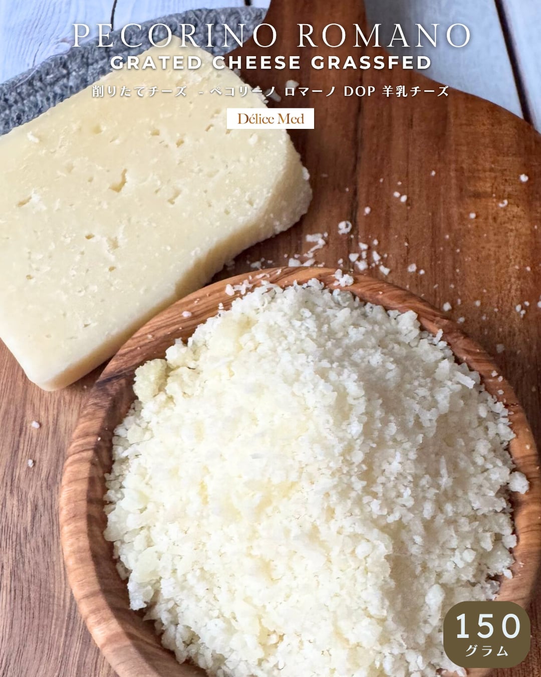 イタリア産 ペコリーノ ロマーノ 粉チーズ 150g|削りたて・羊乳100%・無添加|グラスフェッド|パスタ・グラタン・リゾットに Pecorino Romano Grated Cheese Grassfed No Additives for Pasta & Gratin《DELICEMED》