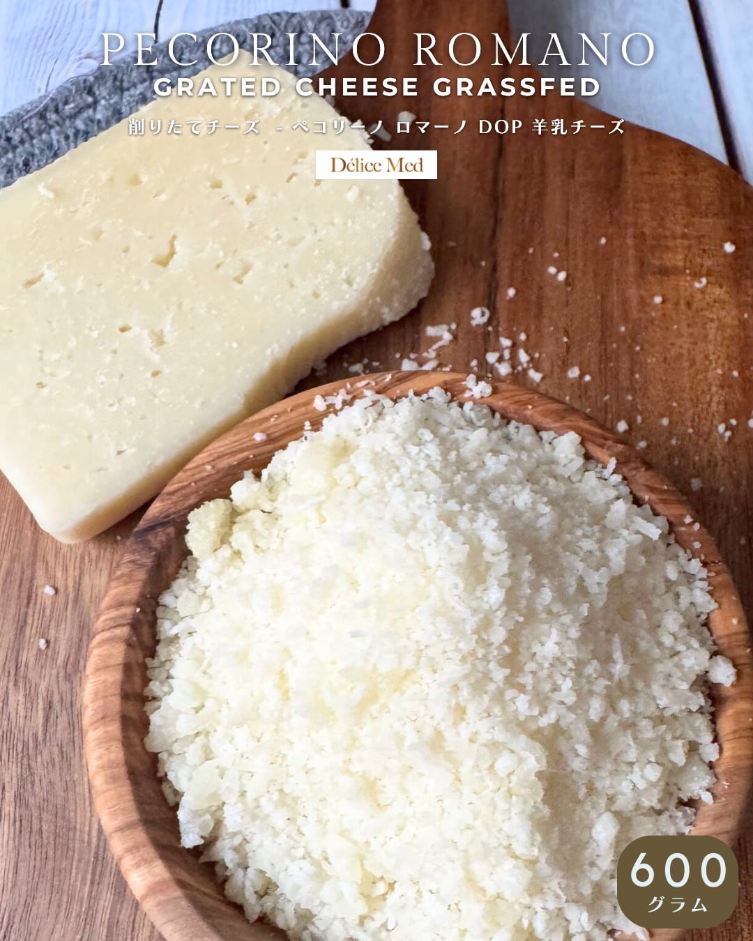 イタリア産 ペコリーノ ロマーノ 粉チーズ 600g|削りたて・羊乳100%・無添加|グラスフェッド|パスタ・グラタン・リゾットに Pecorino Romano Grated Cheese Grassfed No Additives for Pasta & Gratin《DELICEMED》