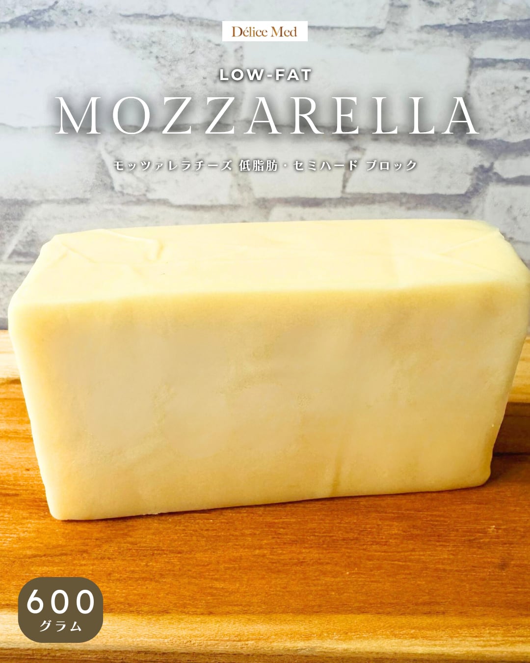 アメリカ産 モッツァレラチーズ 低脂肪 セミハード ブロック 600g|やさしく香る軽やかなコク 加熱料理・トーストに|Low-Fat Mozzarella for Cooking【DELICEMED】
