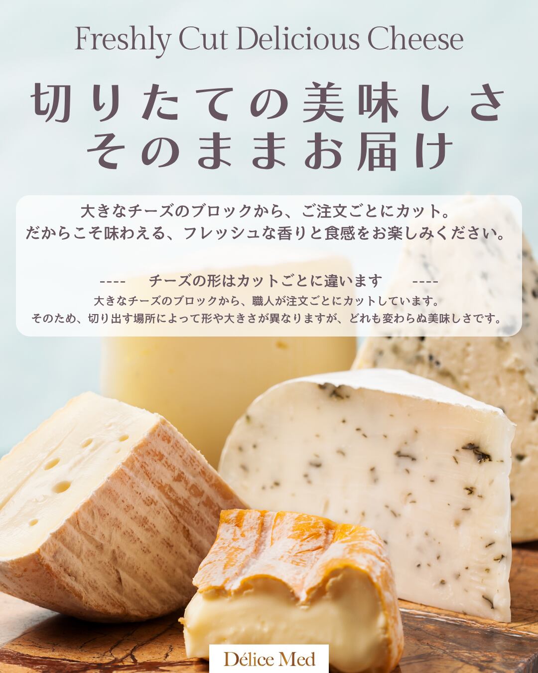ワインとゆっくり味わう時間向けのチーズもご用意しています。