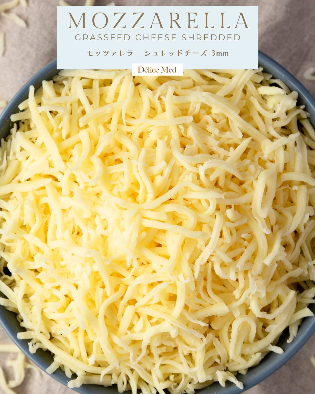 余計な添加物を使わないナチュラルチーズ。シュレッドでも粉落ちしにくい仕上がりです。