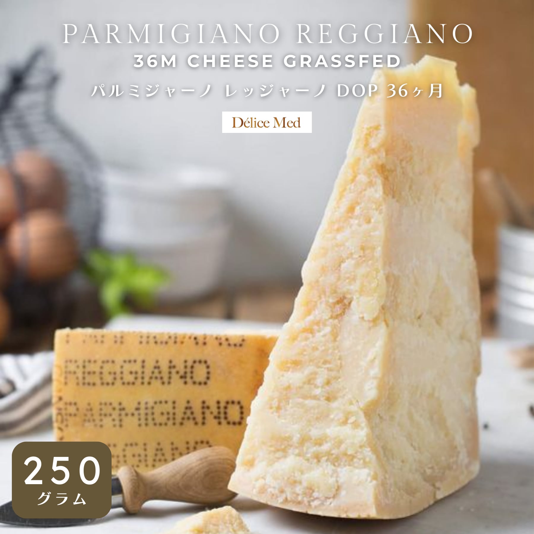 イタリア産 パルミジャーノ・レッジャーノ DOP 36ヶ月熟成 250g|結晶の旨みと力強いコク|削り・割り・そのまま楽しむハードチーズ【DELICEMED】Parmigiano Reggiano 36M Grassfed Cheese