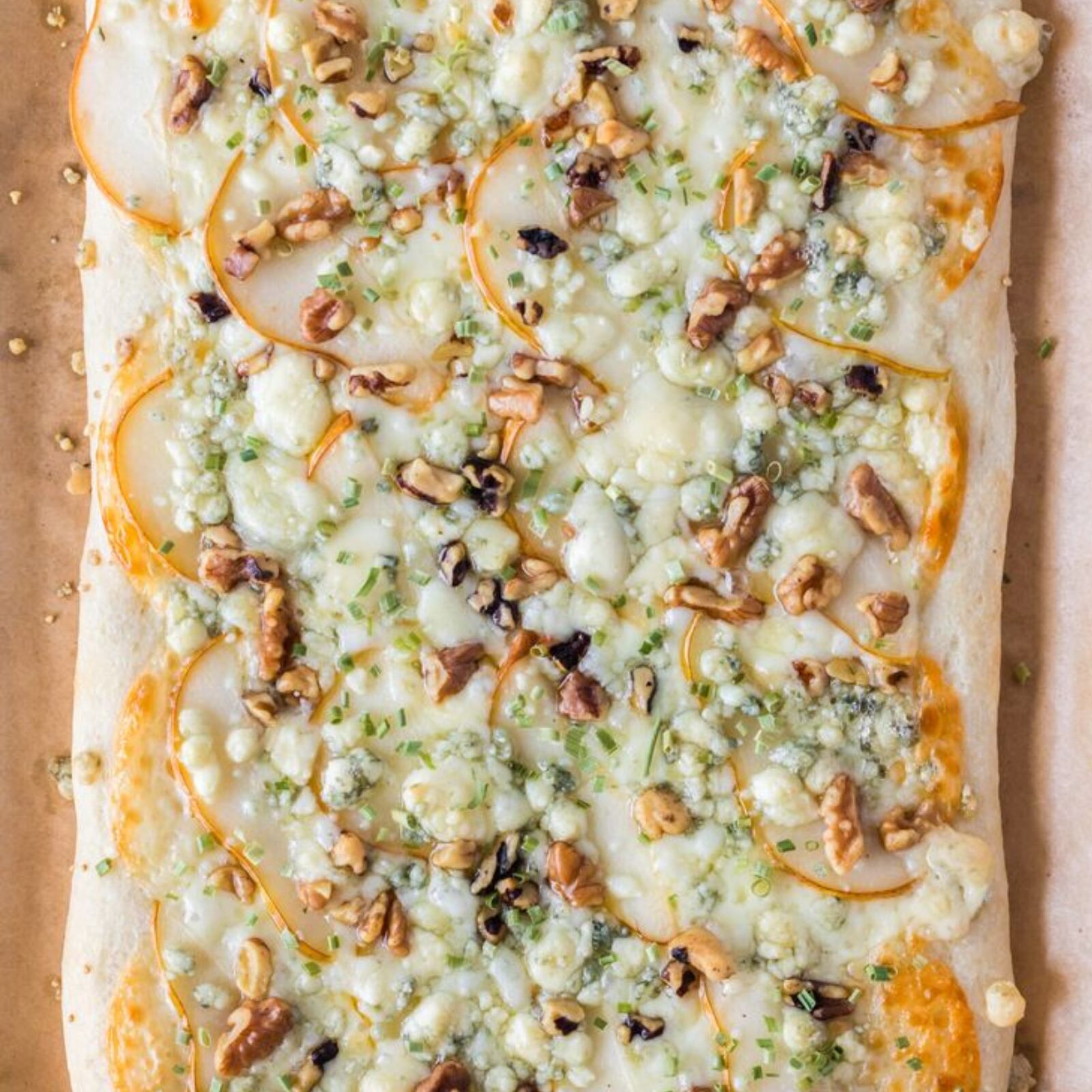 ピザでは焼き上がり直前または焼き上がり後に散らすことで、ブルーチーズの香りがアクセントになります。