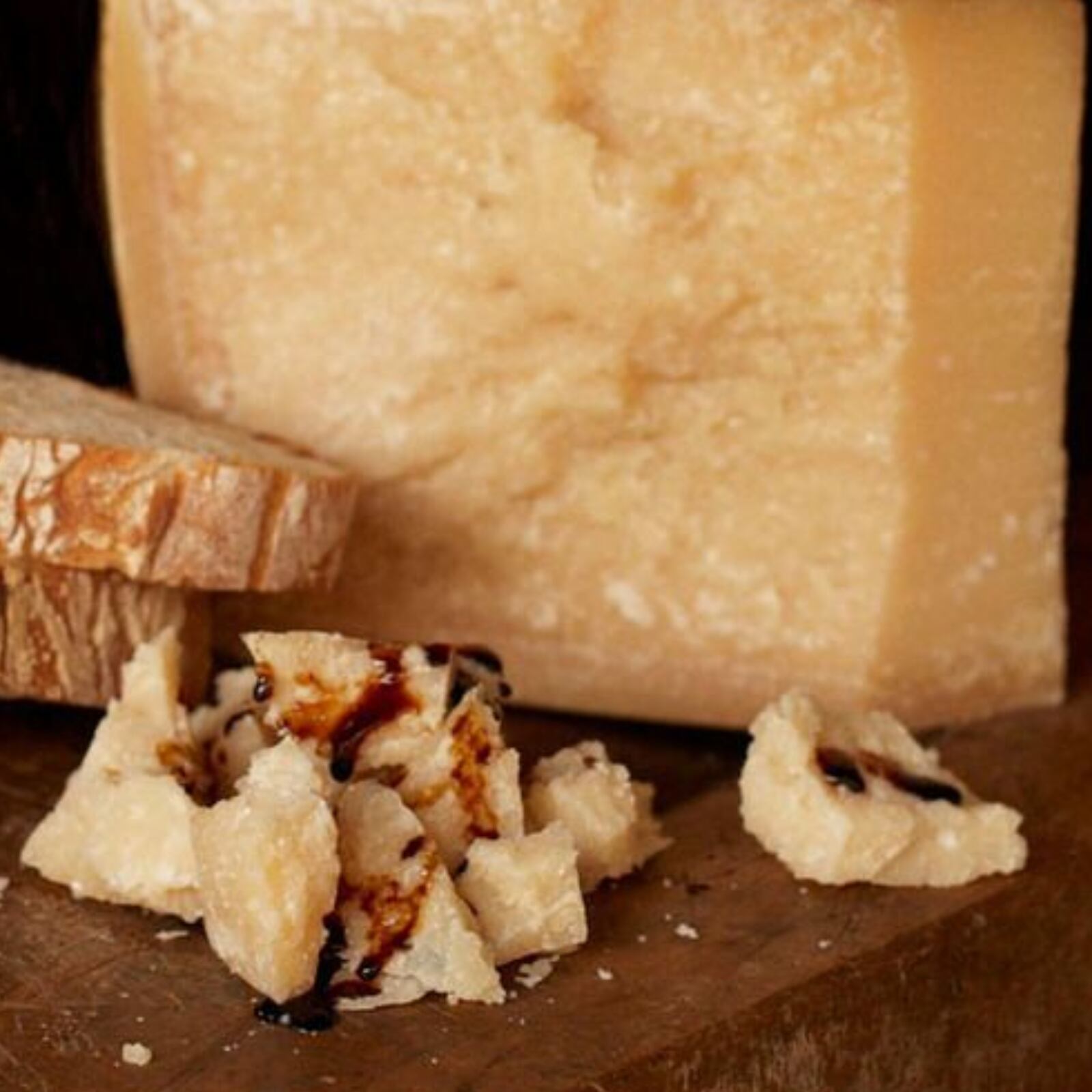 原料は、イタリア産のパルミジャーノ・レッジャーノ DOP。牛乳から作られるハードチーズで、36ヶ月の長期熟成によって水分が抜け、旨味と香りが凝縮されています。熟成が進むと生地の中にアミノ酸の結晶が生まれ、噛んだときにシャリっとした食感が出るのが特徴です。
