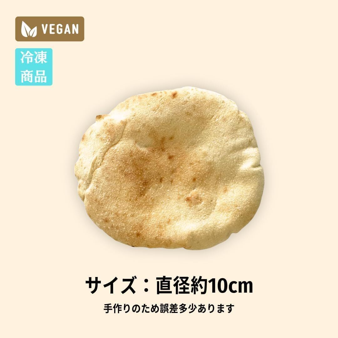 直径約10cmの手作りミニピタパン。小さめサイズで1枚ずつ使いやすく、無駄なく使い切れるのが特徴。冷凍保存で必要な分だけ解凍してすぐ使えるピタブレッド