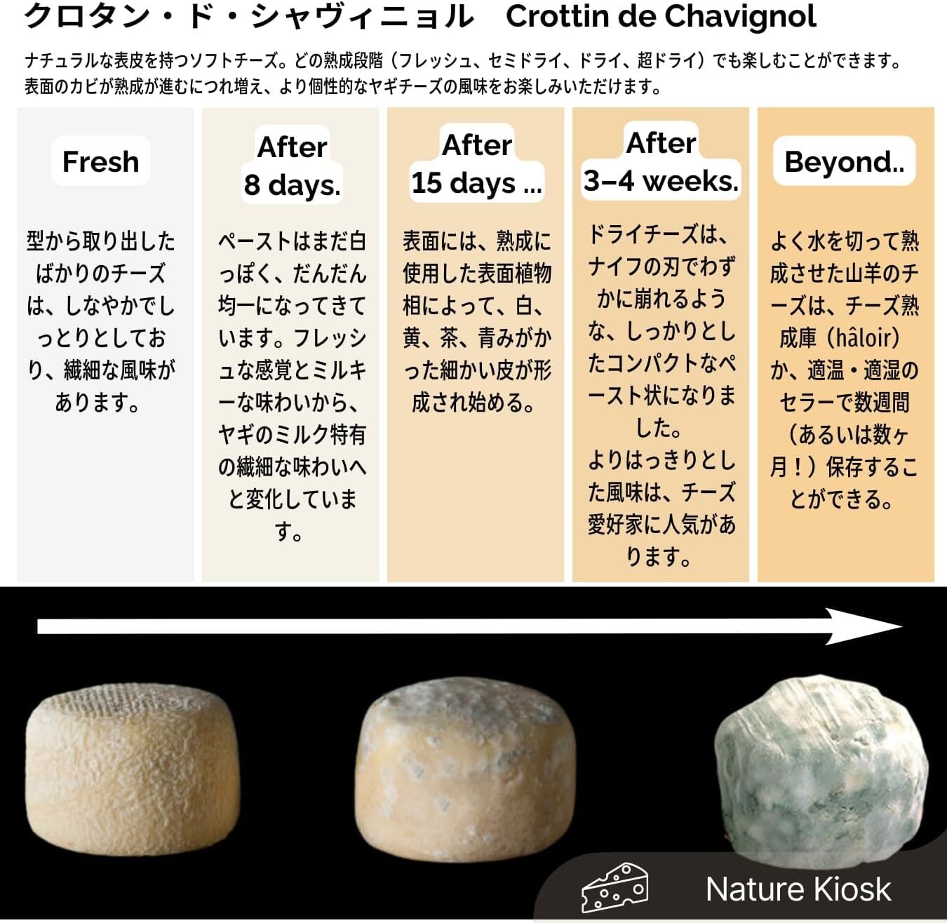 フランスを代表する山羊乳チーズ。熟成によって変化する酸味とコクが特徴で、外側はしっかり、中はなめらかな質感。シンプルにカットしてそのままでも、軽く温めてサラダに合わせる使い方もできます。