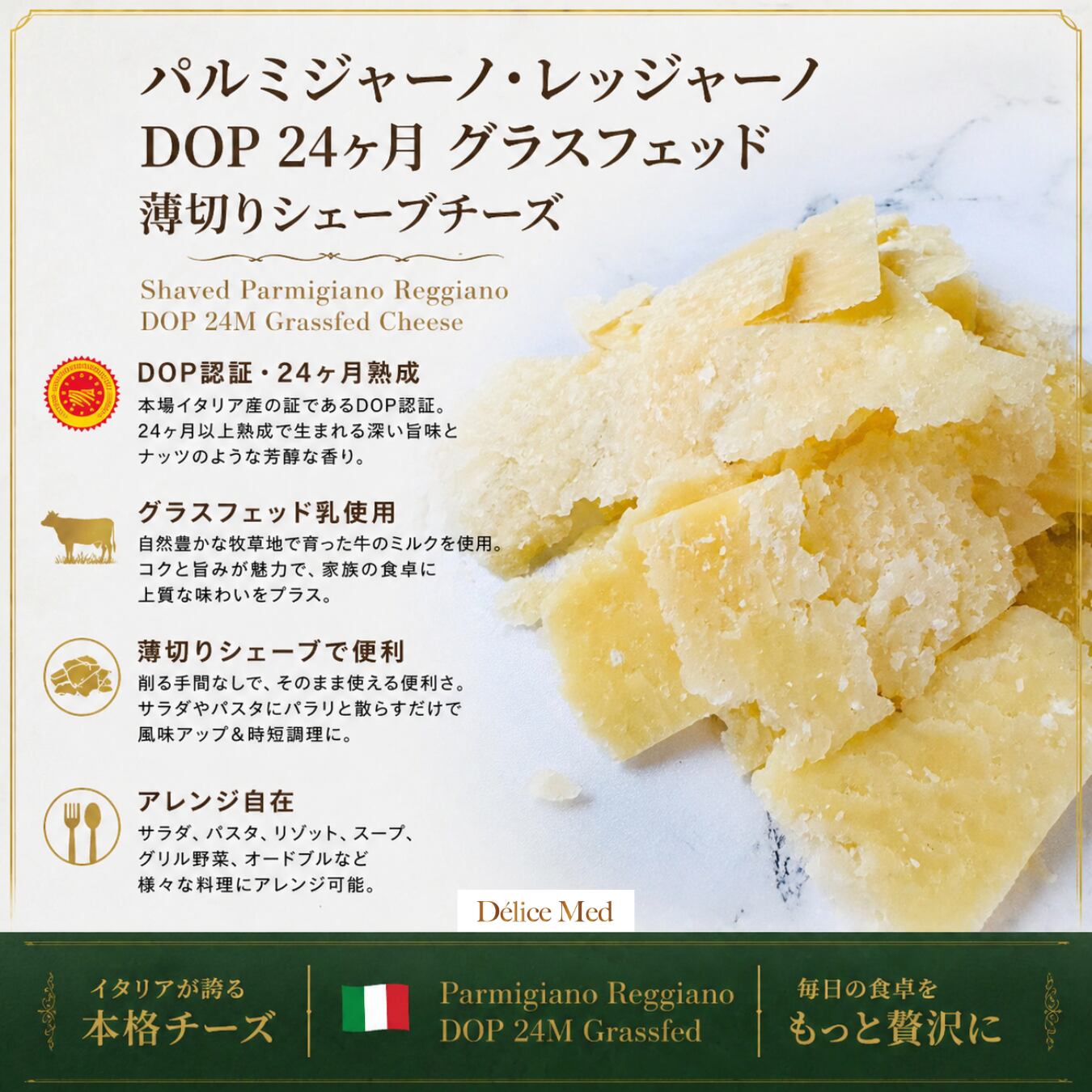 パルミジャーノ・レッジャーノ DOP 24ヶ月 グラスフェッド 薄切りシェーブチーズ 600g|粉チーズ代替に最適 サラダ・パスタ・リゾット トッピング用|Shaved Parmigiano Reggiano 24M Grassfed Cheese