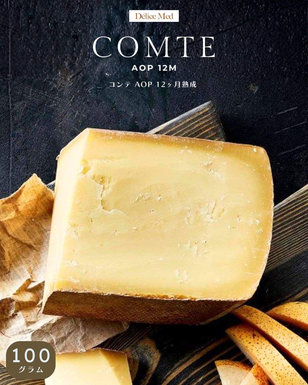 コンテ AOP 12ヶ月熟成 100g フランス産 グラスフェッド|ハードチーズ サラダ・おつまみ・チーズフォンデュに Comte 12M Grassfed Hard Cheese for Sandwich, Gratin & Fondue