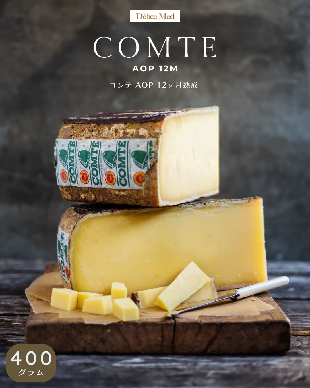 コンテ AOP 12ヶ月熟成 400g フランス産 グラスフェッド|ハードチーズ サラダ・おつまみ・チーズフォンデュに Comte 12M Grassfed Hard Cheese for Sandwich, Gratin & Fondue